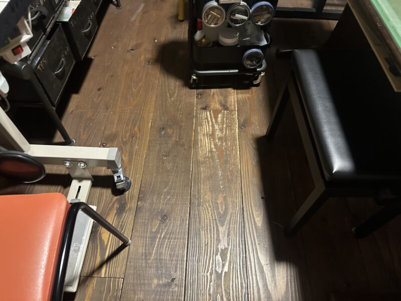 僕のアトリエの床は、椅子の移動で塗装が剥げて良い具合に傷まめしになってきました。
